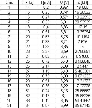 závislosť: - prúdu na frekvencii